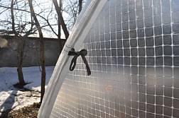 - Съёмное покрытие. Армированная пленка снимается на зиму, что благоприятно влияет на плодородие почвы (напитывается влагой, не пересыхает, микроорганизмы не вымирают).