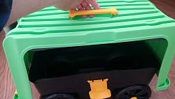 - Ящик с ручкой для инструмента, на колёсах, крышка- подставка для ног или для сидения.