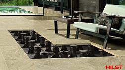 - Точная регулировка готовой террасы с плиткой. Для обеспечения точной регулировки уклонов террасы из плитки, используйте специальный ключ. С опорами HILST Lift для этого нет необходимости разбирать весь настил или его часть.