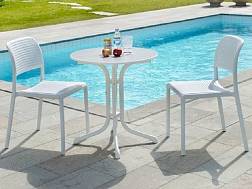 - Стулья изготовлены из монолитного пластика без добавления вторичного материала. Основа - полипропилен со стекловолокном, придающий высокую прочность. Материал прокрашен в массе, поэтому он не выцветет от воздействия солнечных лучей и царапины видны не будут. Ножки не скользят. Поверхность изделий - матовая. Стулья Bora штабелируемые, кресло Darsena складывается.