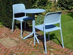 - Стулья изготовлены из монолитного пластика без добавления вторичного материала. Основа - полипропилен со стекловолокном, придающий высокую прочность. Материал прокрашен в массе, поэтому он не выцветет от воздействия солнечных лучей и царапины видны не будут. Ножки не скользят. Поверхность изделий - матовая. Стулья Bora штабелируемые, кресло Darsena складывается.
