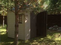 - Имеет пол. Т.е. данный садовый домик герметичен, там не прорастает трава, нет грязи. Также можно устанавливать его на любое основание из песчано-гравийной смеси или щебня, т.е. не требуется твердого основания из бетона или асфальта.