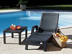 - Шезлонг прекрассно впишется в декор Вашего дачного участка, а также станет прекрассным завершением ансамбля уличной мебели из пластика под искуственный ротанг. Шезлонг также поможет создать атмосферу уюта перед бассейном в SPA зоне.
