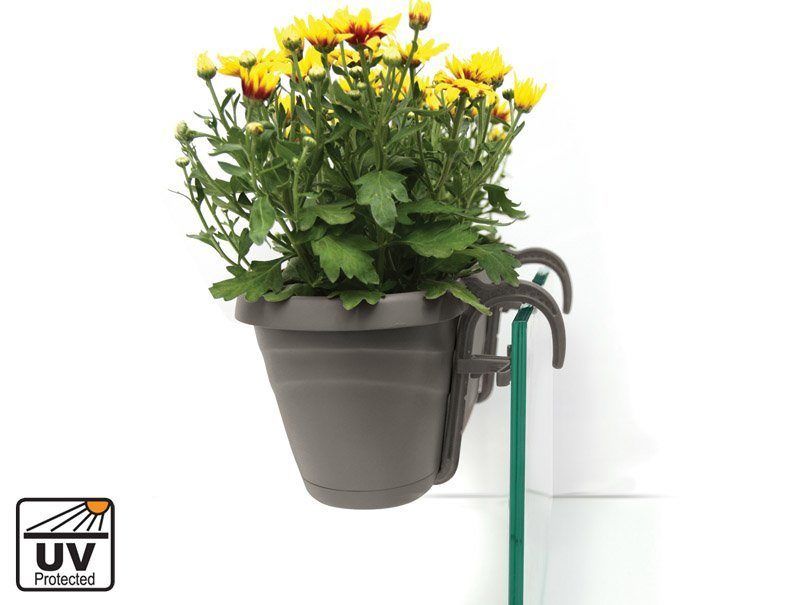 - В комплекте универсальный набор для крепления горшков на разные типы ограждений.