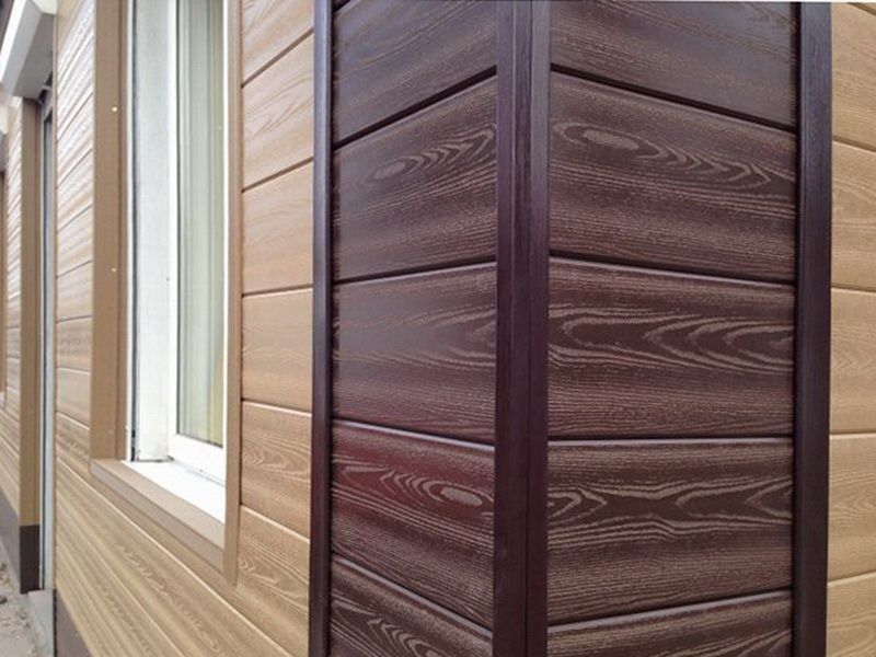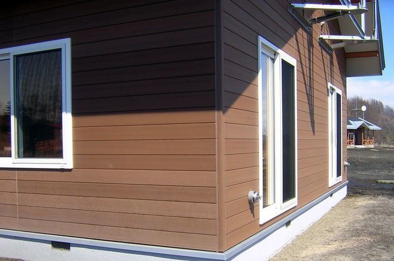 - При помощи металлического и винилового сайдинга можно получить аккуратную обшивку дома выбранной расцветки. Но данные отделочные материалы не позволяют имитировать натуральные материалы, в отличие от сайдинга из ДПК, который способен передать натуральную текстуру древесины.