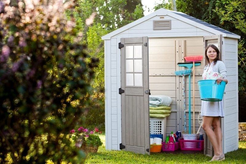 - Имеет пол. Т.е. данный садовый домик герметичен, там не прорастает трава, нет грязи. Также можно устанавливать его на любое основание из песчано-гравийной смеси или щебня, т.е. не требуется твердого основания из бетона или асфальта.