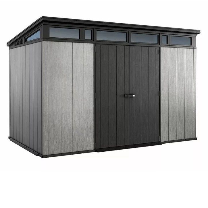 - В комплект каждого сарая входит: система пассивного проветривания, пластиковый пол, усиленный металлический каркас, окна, двери с петлями, прозрачный конек.