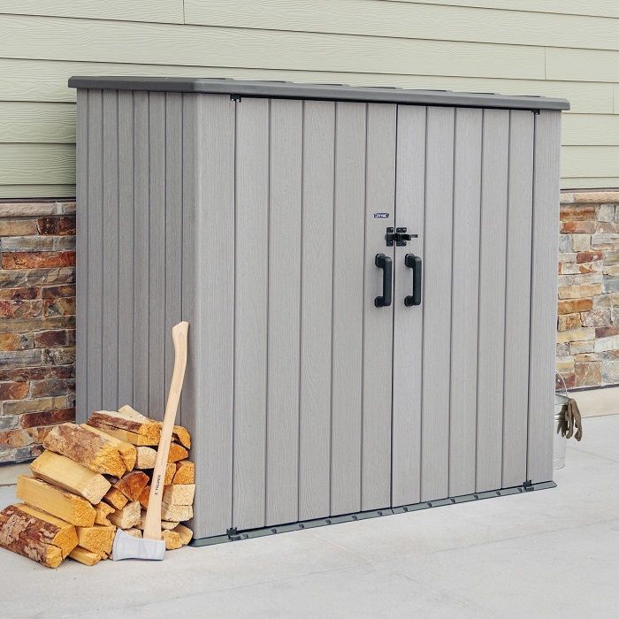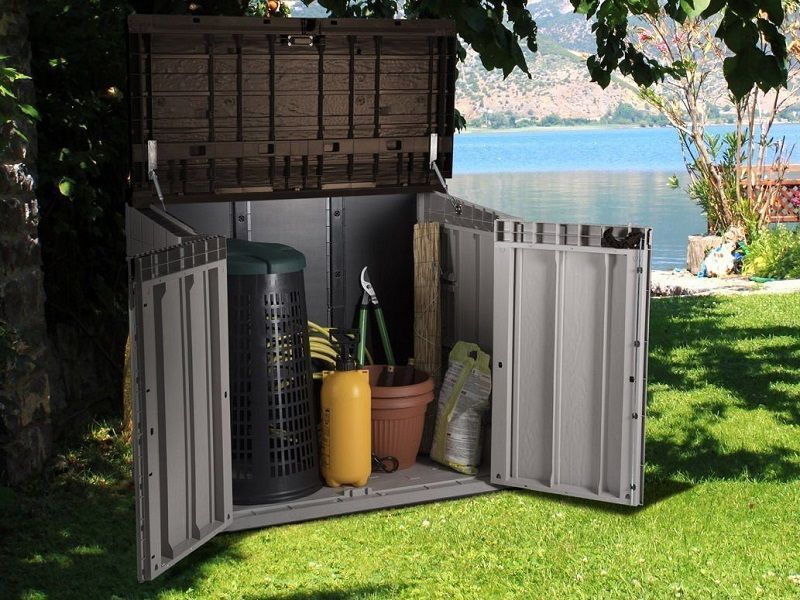 - Открывающаяся крышка и створки подходит для хранения габаритного, тяжелого инвентаря в загородном хозяйстве. Удобны для использования в качестве эстетичного хранения мусорных контейнеров, газовых баллонов, дров, барбекю, газонокосилок, велосипедов, хозинвентаря и т.д.