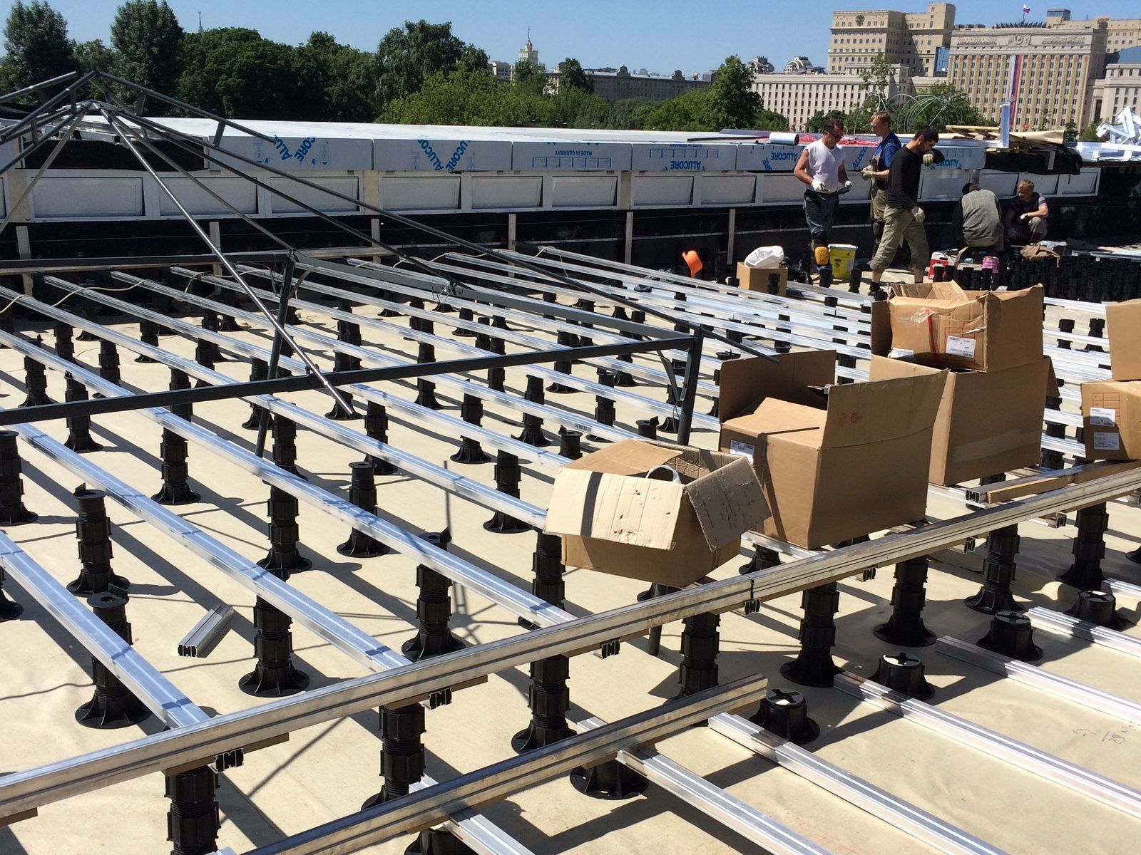 Дополнительные преимущества монтажа настила на алюминиевые лаги и регулируемые опоры